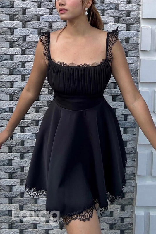 22901 - A-Line Spaghetti Straps Lace Sleek Satin Elegant Party Homecoming Dress