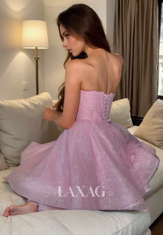 A-Line Strapless Tulle Glitter Elegant Party Homecoming Dress