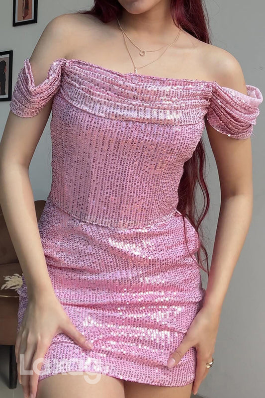 22906 - Off Shoulder Fully Sequins Fitted Party Homecoming Dress