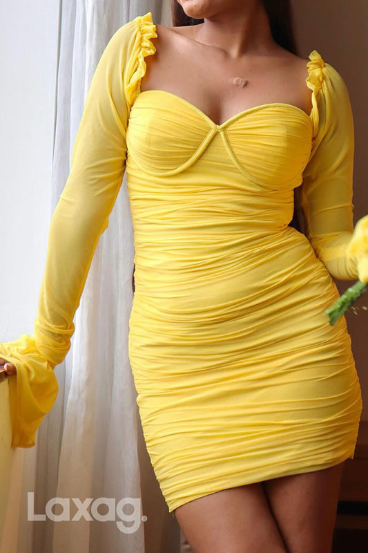 22909 - Sweetheart Long Sleeves Sleek Satin Fitted Party Homecoming Dress