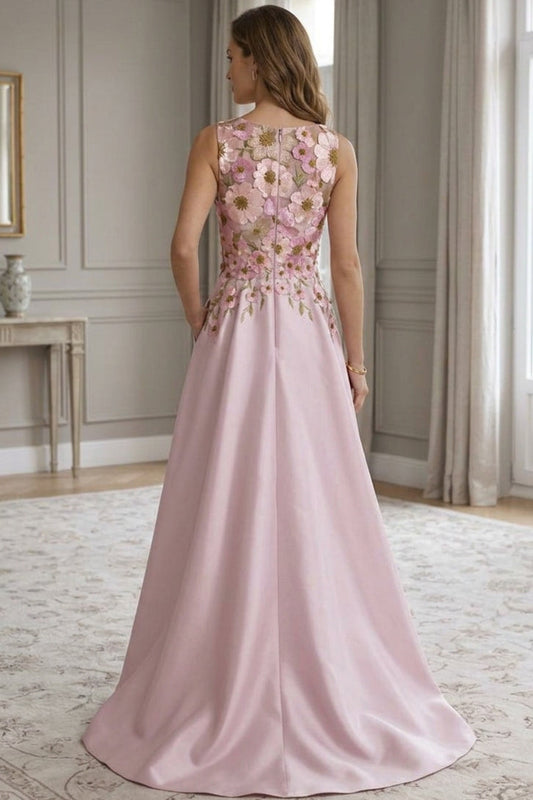 Scoop-Neck Sleeveless Ankle-Length Jacquard Satin Pleated A-Line Mother of the Bride Dress