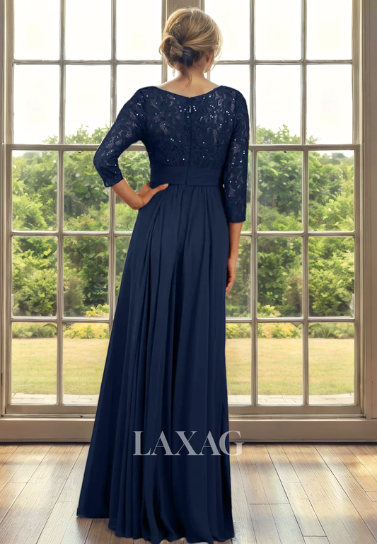 A-Line Round Quarter Sleeves Beaded Lace Appliques Mother of the Bride Dress