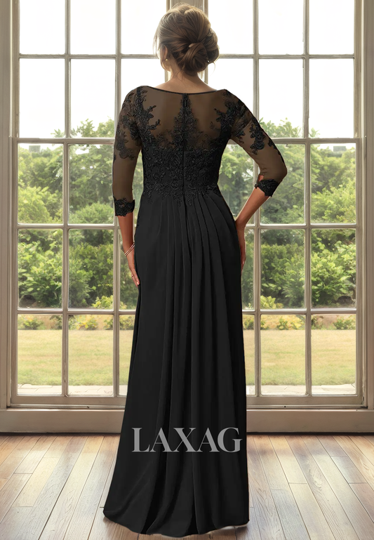 A-Line Bateau Quarter Sleeves Lace Appliques Sleek Satin Mother of the Bride Dress