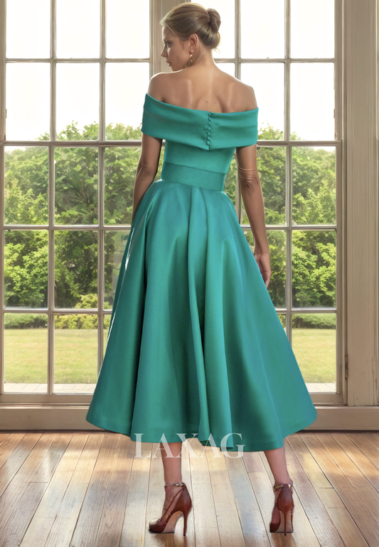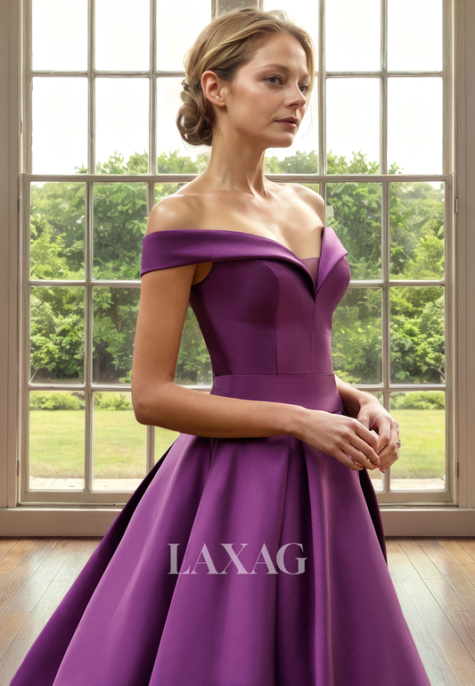 A-Line Off Shoulder Sleek Satin Elegant Mother of the Bride Dress
