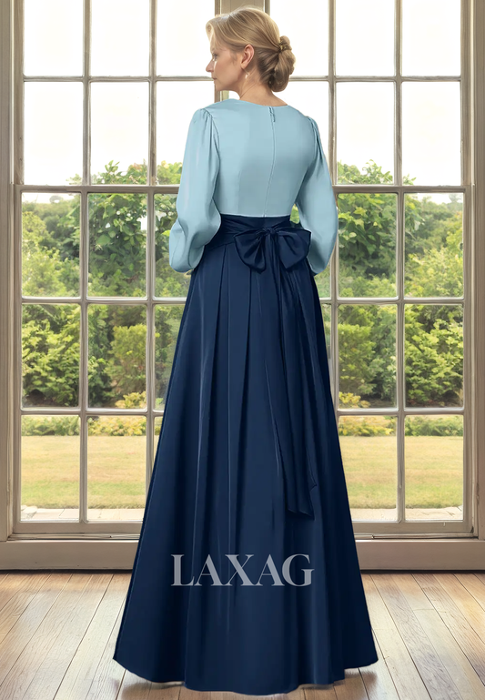 A-Line V-Neck Long Sleeves Sleek Satin Elegant Mother of the Bride Dress