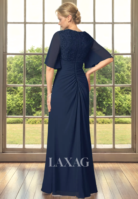 A-Line V-Neck Short Sleeves Chiffon Elegant Mother of the Bride Dress