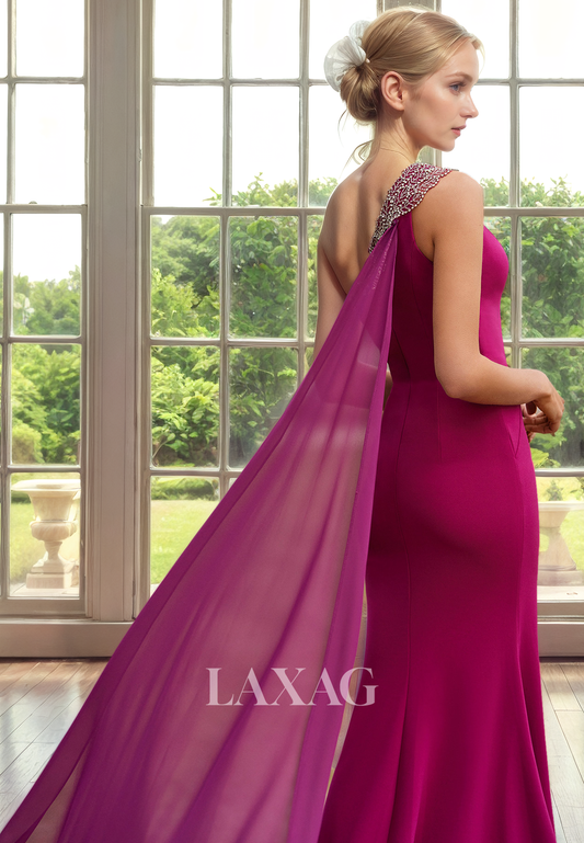 One Shoulder Beaded Sleek Satin Mermaid Mother of the Bride Dress with Slit