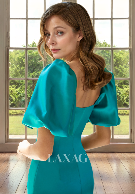Round Short Sleeves Sleek Satin Mermaid Mother of the Bride Dress with Bow Detail
