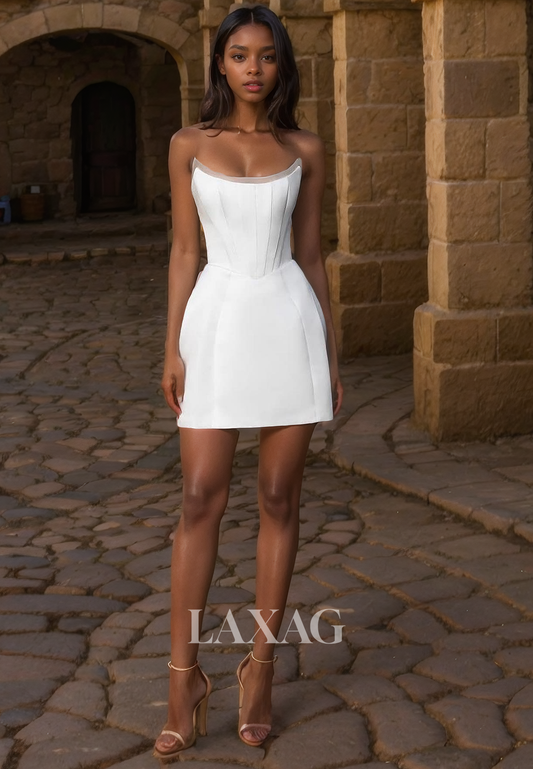 A-Linie Strapless Glitter Tulle illsuion Elegant Short Wedding Dress