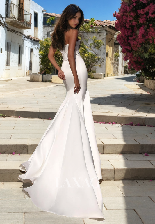 Strapless Sleek Satin Mermaid Elegant Wedding Dress with Train