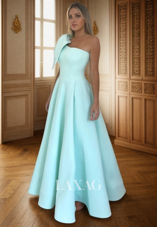 A-Line One Shoulder Sleek Satin Elegant Party Prom Formal Evening Dress