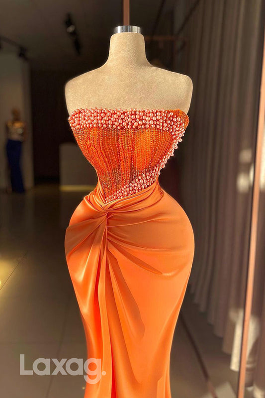 18778 - Mermaid/Trumpet Strapless Luxury Beads Long Semi Formal Prom Dress with Slit