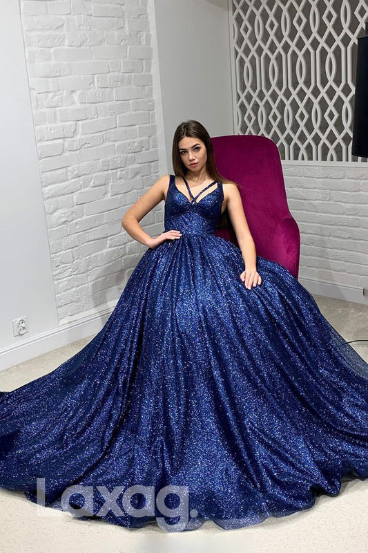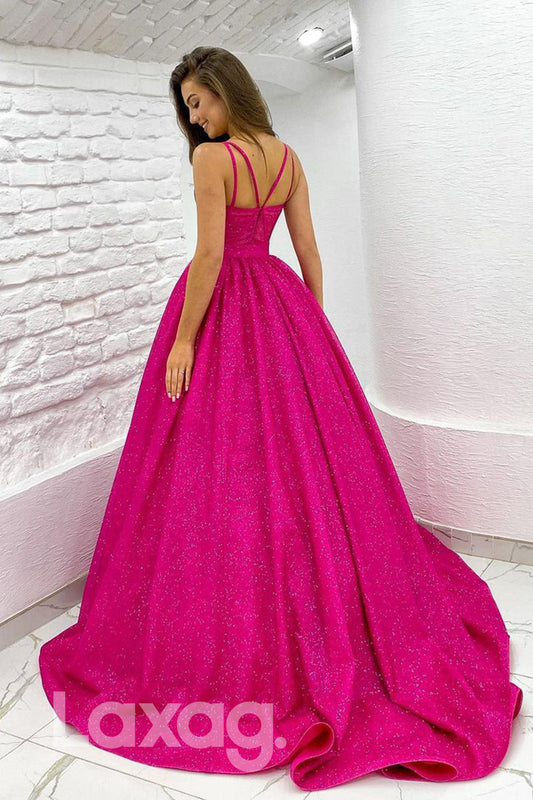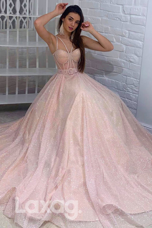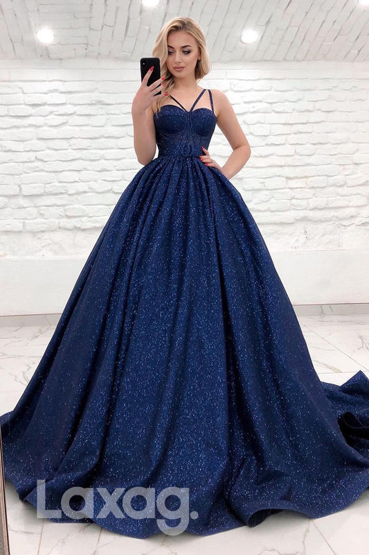 19719 - Spaghetti Straps Sparkly Prom Ball Gown Glitter