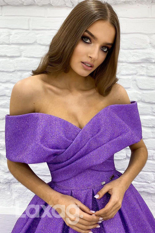 19718 - Unique Off the Shoulder Purple Prom Dress Glitter