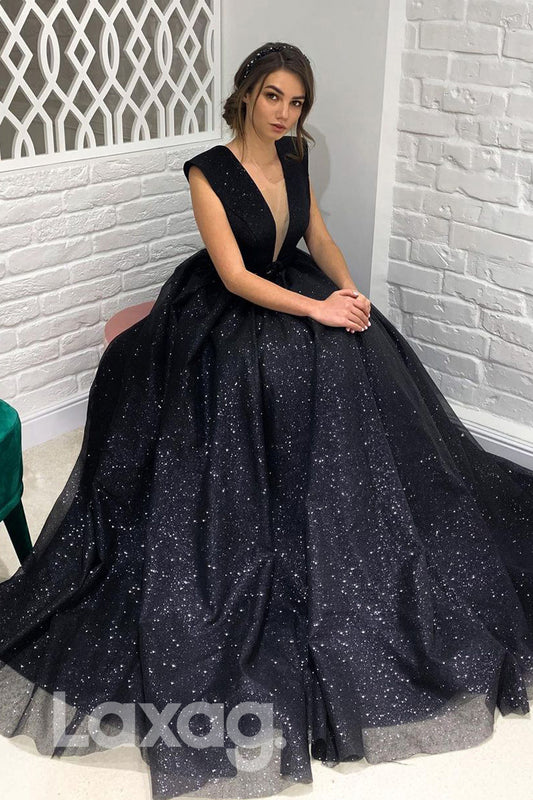 18794 - Sexy V-Neck Ball Gown Sparkly Prom Dresses with Pockets