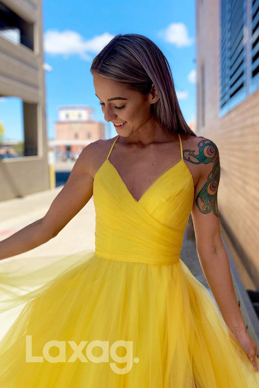 18788 - Women's V-Neck Yellow Tulle Long Prom Dresses