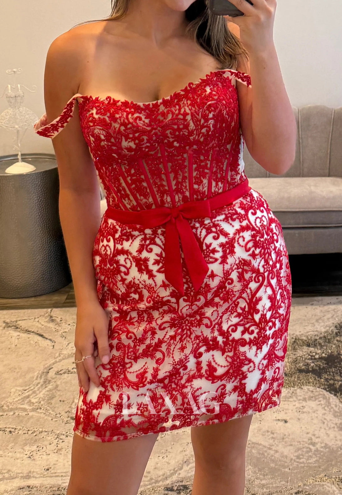 Elevate your party look with this stunning scoop-neck, off-shoulder dress featuring intricate beaded lace appliques. Its sleeveless design and short mermaid silhouette create a flattering, elegant shape perfect for homecoming or special occasions. This dress combines delicate craftsmanship with a modern style to ensure you stand out with confidence and grace.