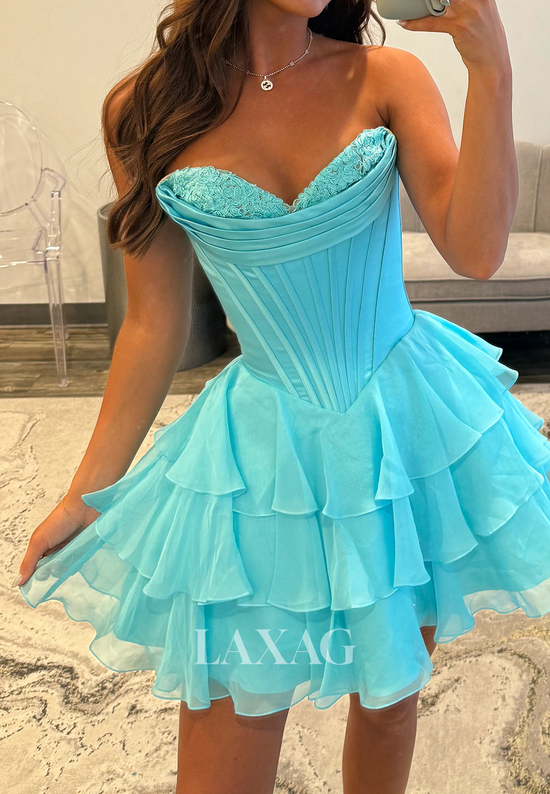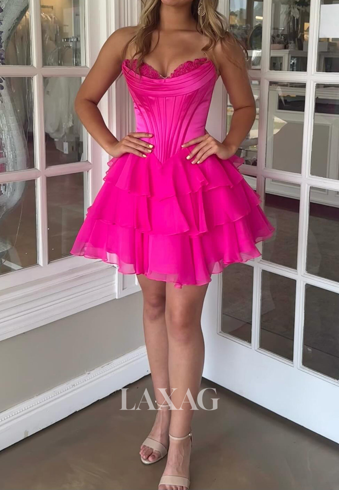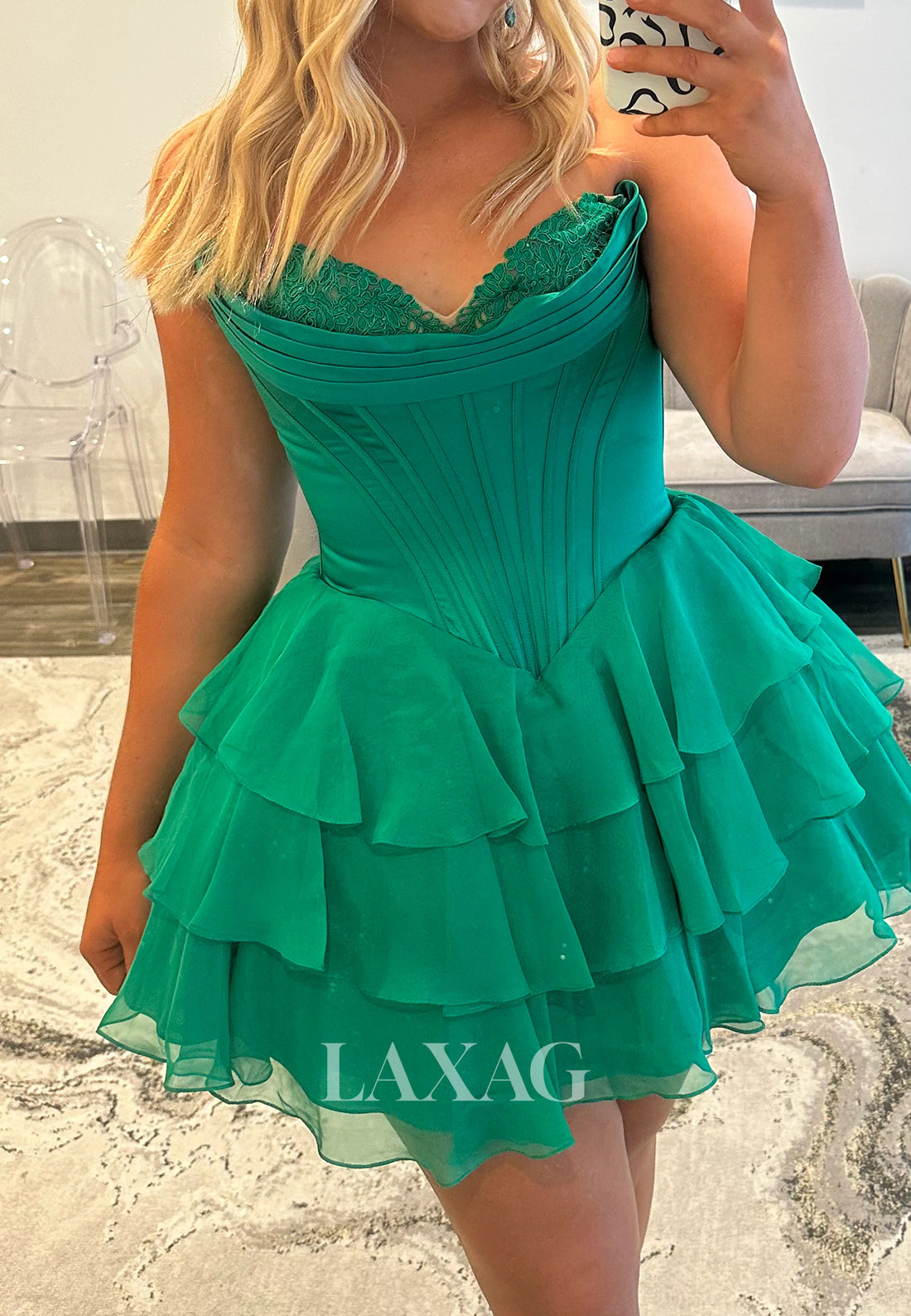 Sweetheart Off-Shoulder Applique Pleated Chiffon Tiered A-Line Party Homecoming Dress