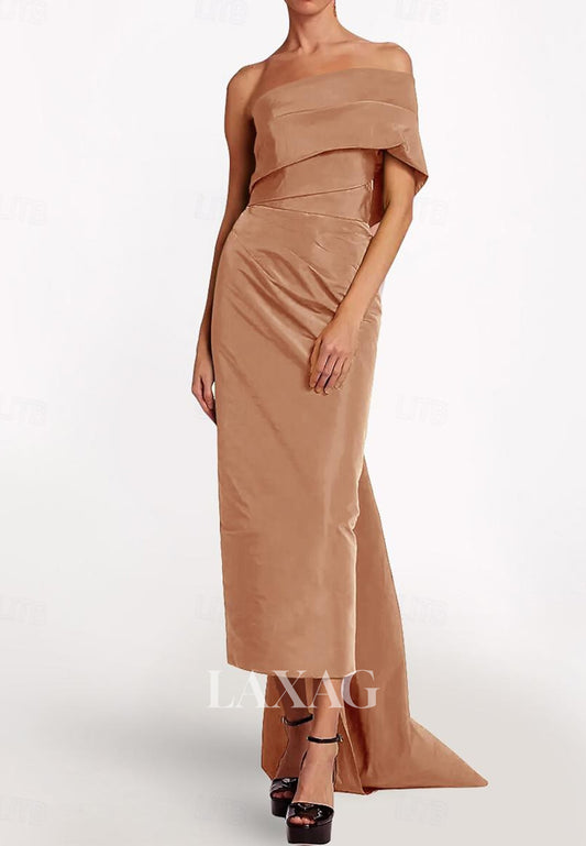 Asymmetrical-Tube Top Sleeveless Mermaid Wedding Guest Dress Off-Shoulder Pleated Sweep Train Satin Party Gowns