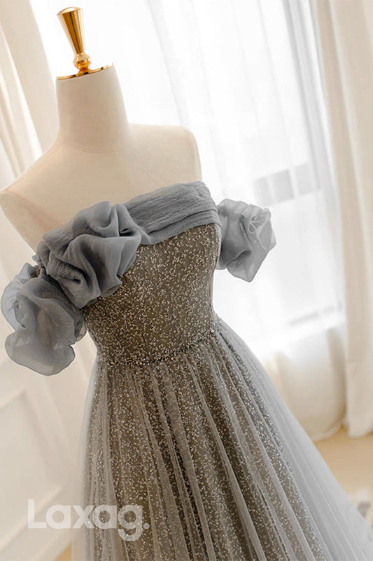 22429 - A-Line Off Shoulder Strapless Sparkly Party Prom Formal Evening Dress