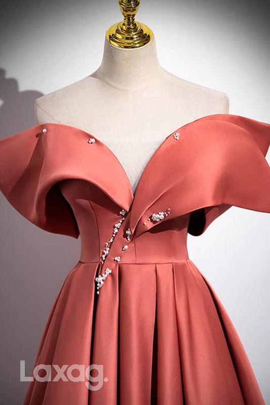 22413 - A-Line Off Shoulder Pearls Sleek Satin Party Prom Formal Evening Dress