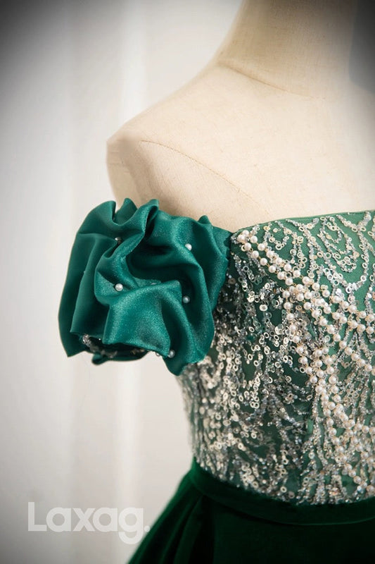 22432 - A-Line Off Shoulder Strapless Pearls Beaded Party Prom Formal Evening Dress
