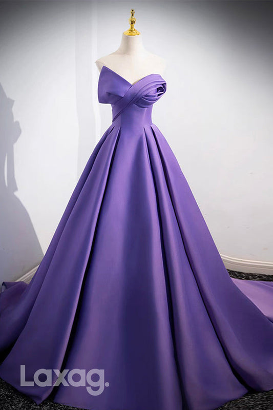 22419 - A-Line Strapless Sleek Satin Elegant Party Prom Formal Evening Dress