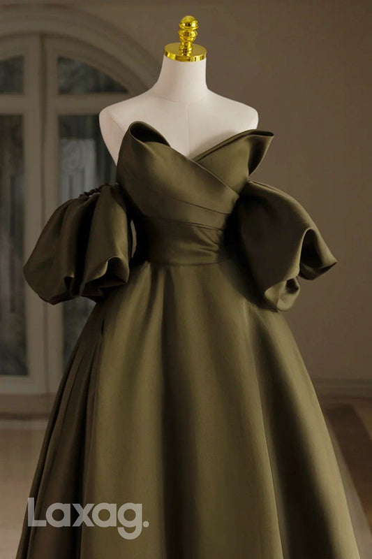 22427 - A-Line Off Shoulder Strapless Sleek Satin Party Prom Formal Evening Dress