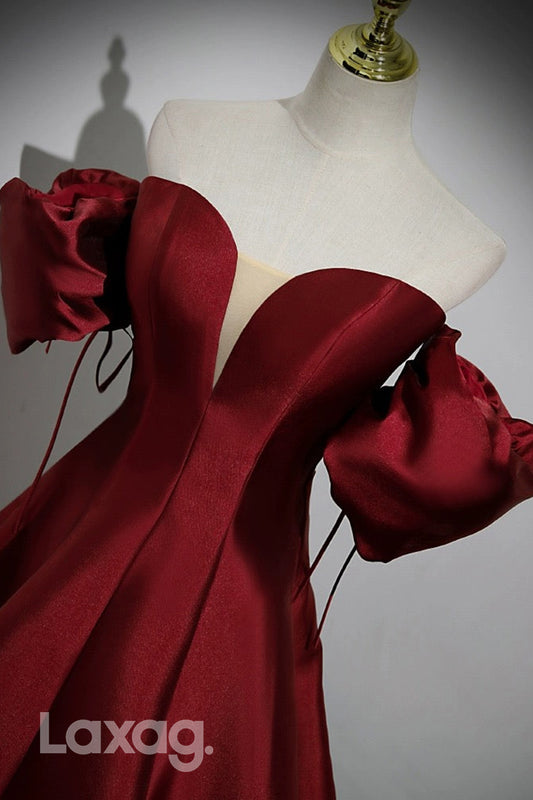 22426 - A-Line Off Shoulder Strapless Sleek Satin Party Prom Formal Evening Dress