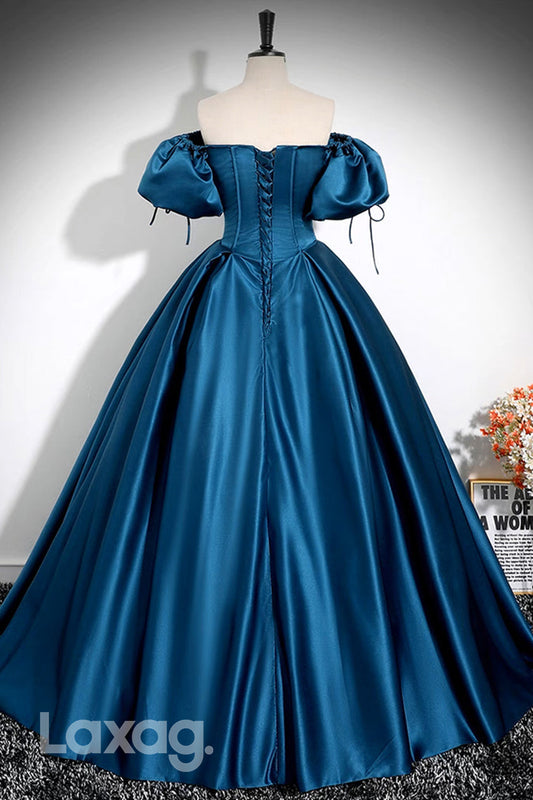 22416 - A-Line Off Shoulder Sleek Satin Elegant Party Prom Formal Evening Dress