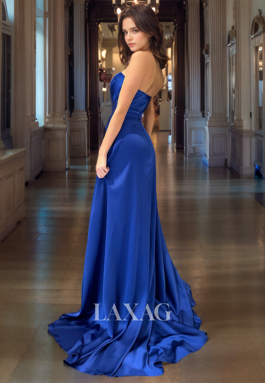 22253 - A-Line Sweetheart Sleek Satin Party Prom Formal Evening Dress with Slit