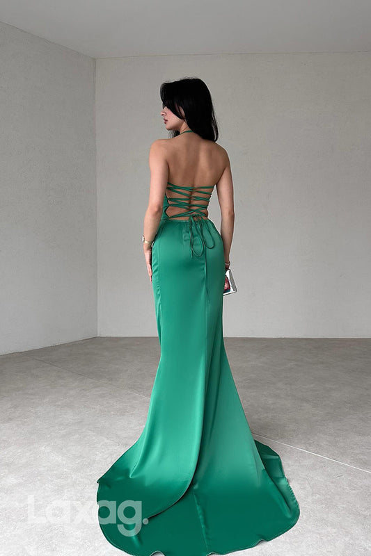 22284 - Sexy Halter Lace Appliques High Slit Party Prom Formal Evening Dress with Train