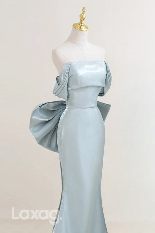 22424 - Off Shoulder Strapless Sleek Satin Mermaid Party Prom Formal Evening Dress