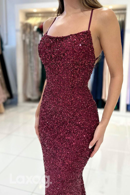 22264 - Spaghetti Straps Backless Fully Sequins Mermaid Party Prom Formal Evening Dress