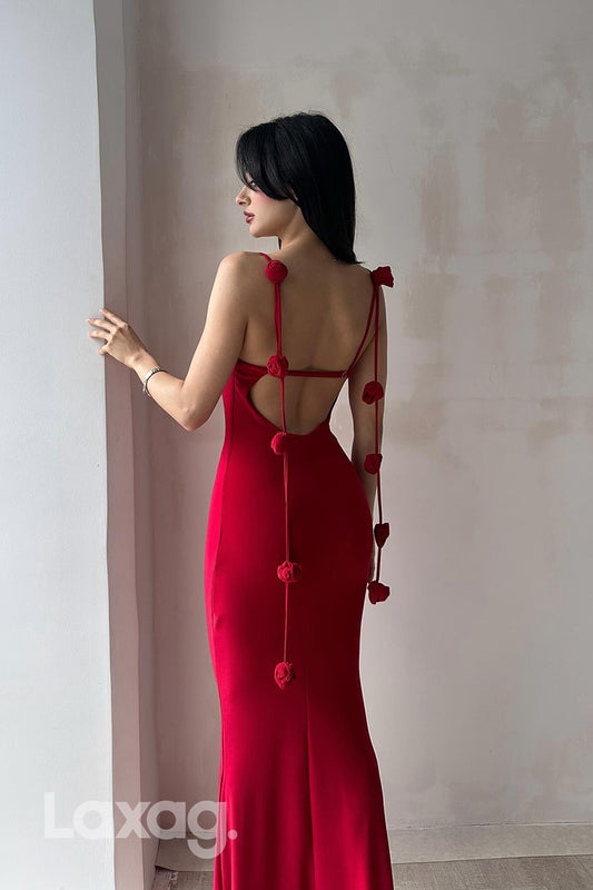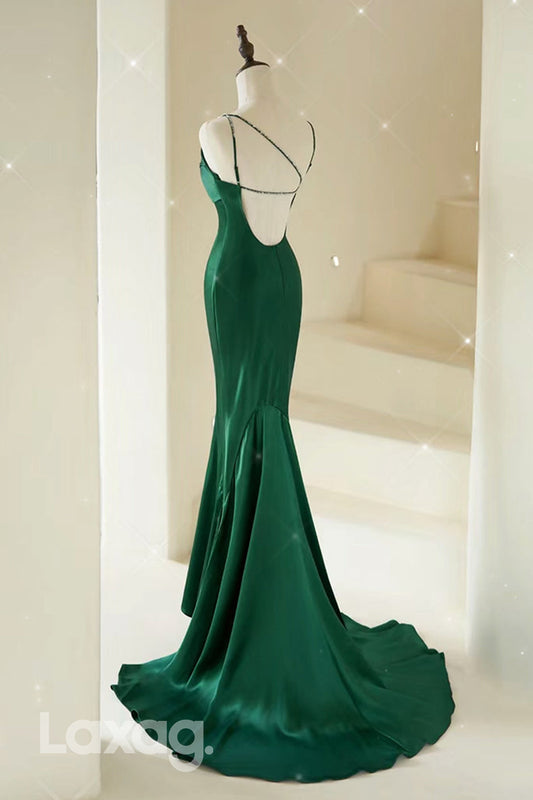 22280 - Spaghetti Straps Backless Sleek Satin Mermaid Party Prom Formal Evening Dress