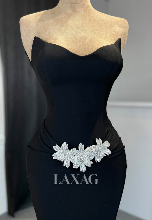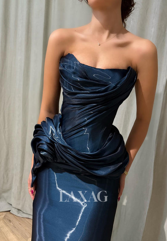 Off-Shoulder Floral Embellished Tube Top Mermaid Prom Dress Sleeveless Pleated Floor-Length Formal Gowns