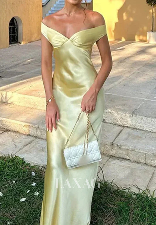 V-Neck Off-Shoulder Sleeveless Evening Gowns Floor-Length Pleated Satin Mermaid Prom Dress