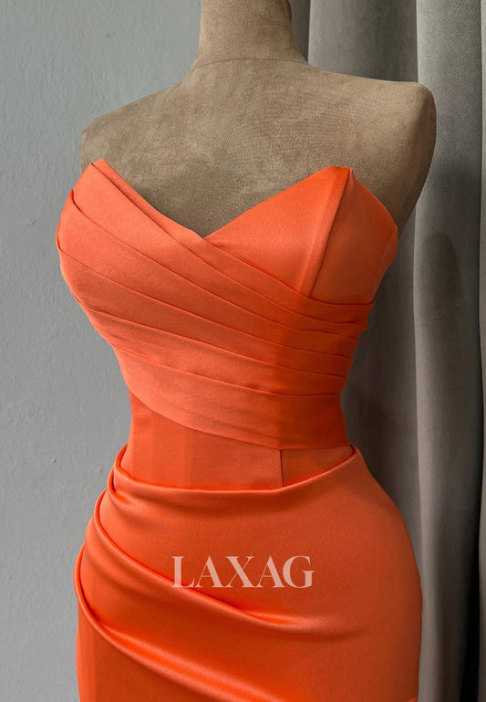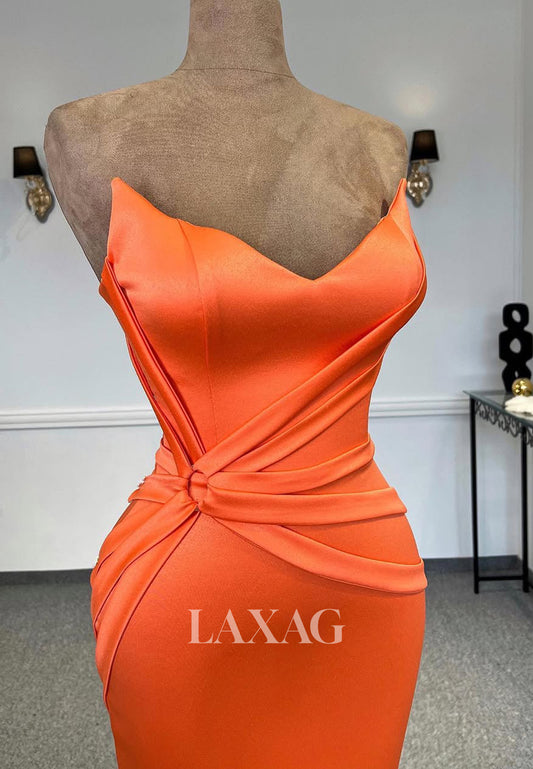 Sweetheart Pleated Sheer Satin Formal Gowns Off-Shoulder Sleeveless Meramid Prom Dress with High Slit