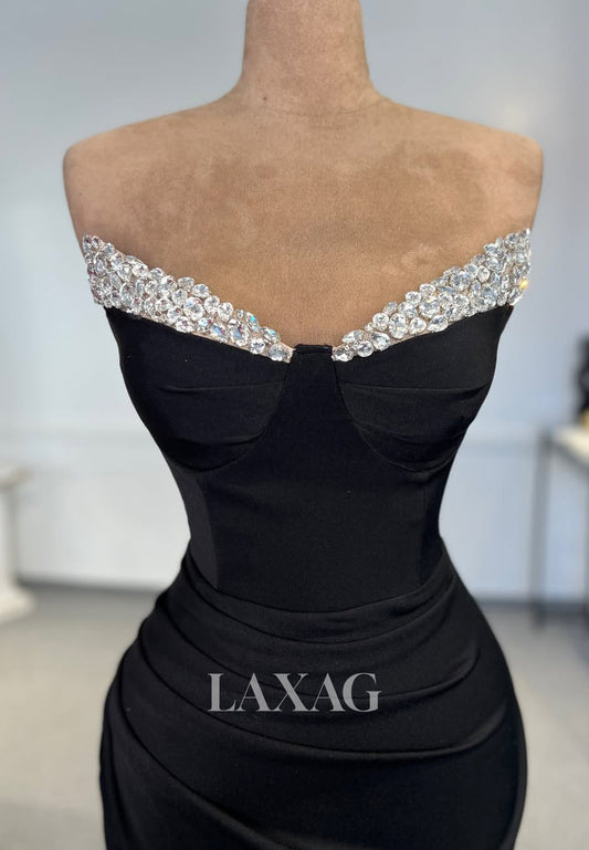 Tube Top Off-Shoulder Sleeveless Evening Gowns Rhinestone Floor-Length Satin Mermaid Prom Dress