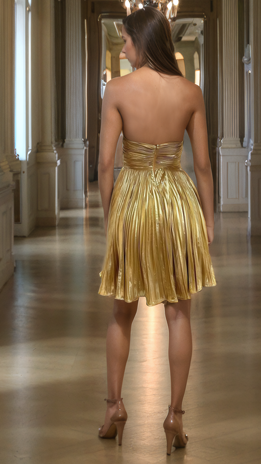High Neck Backelss Cutout Pleated Sleek Satin Fitted Party Homecoming Dress