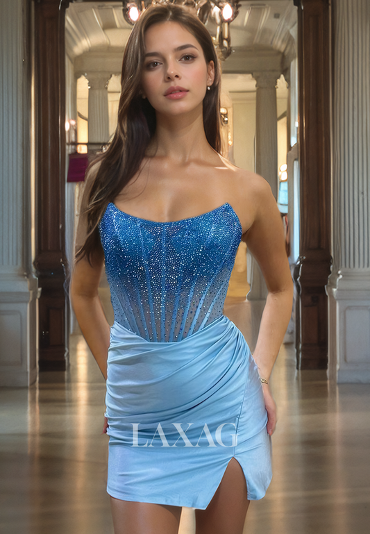 Sweetheart Sheath&Column Strapless Shiny Beaded Top Short Party Homecoming Dress
