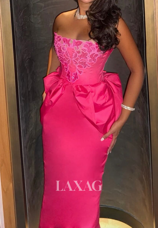 Tube Top Sleeveless Mermaid Evening Dress Sequined Applique Satin Pleated Formal Gowns