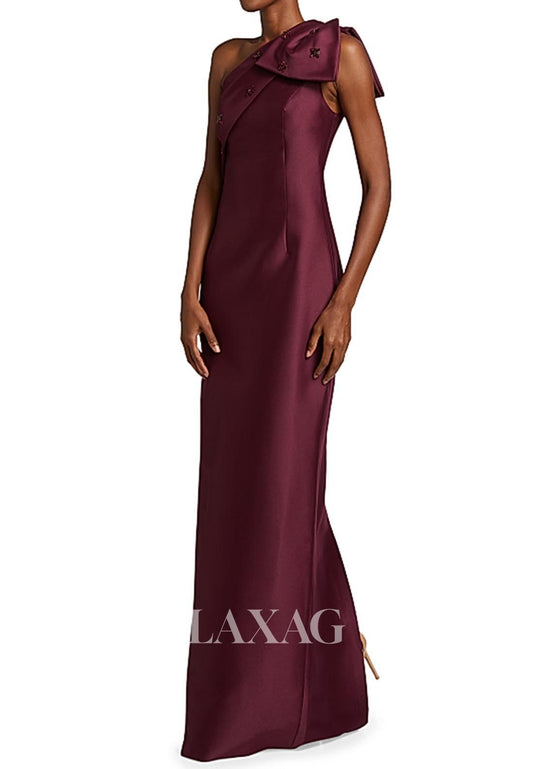 Bows Tube Top Floor-Length Formal Gowns Sleeveless Satin Fitted Evening Dress