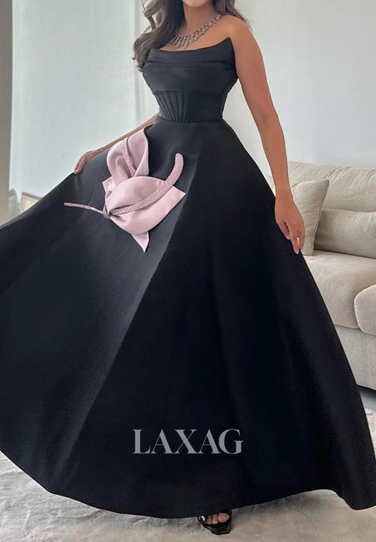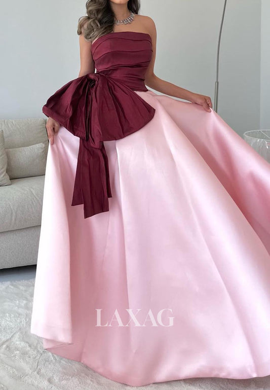 Sleeveless Off-Shoulder Pleated Satin Formal Gowns Tube Top Two Tone A-Line Evening Dress with Bows