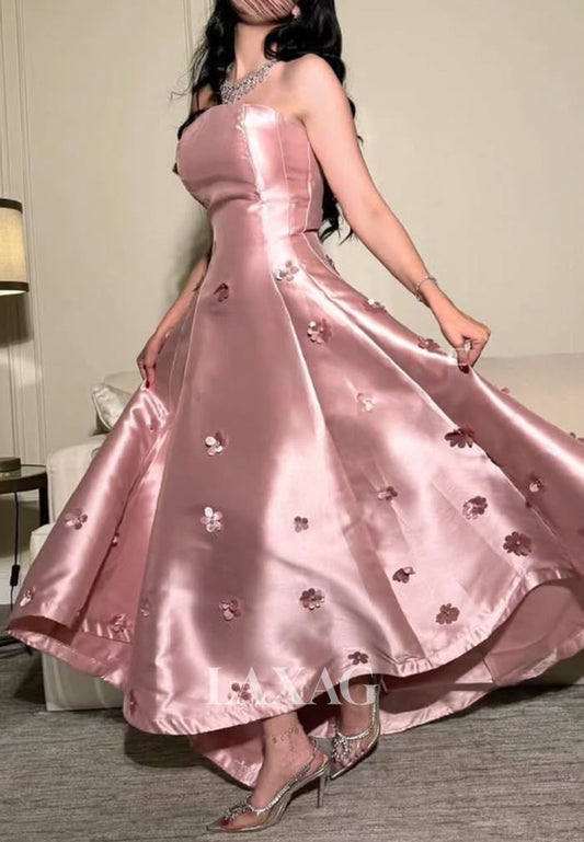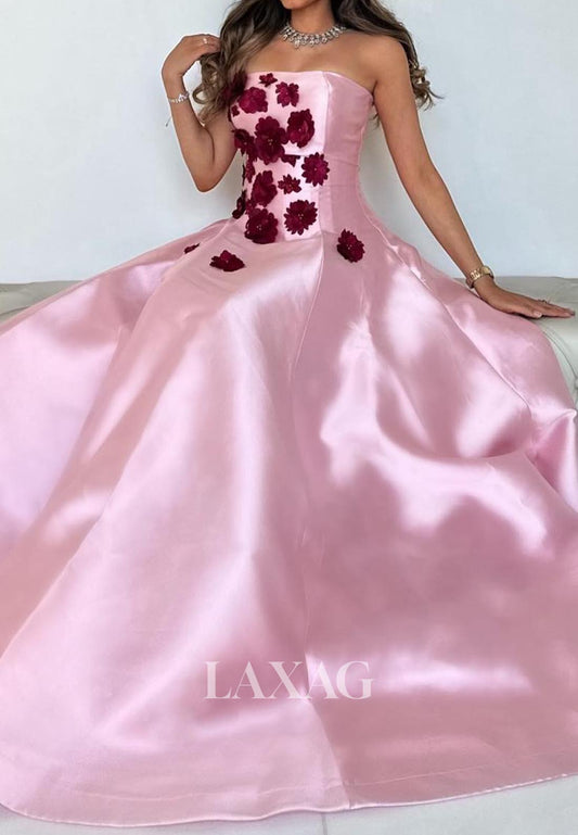 Floral Embellished Tube Top Formal Gowns Sleeveless Floor-Length Satin Evening Dress