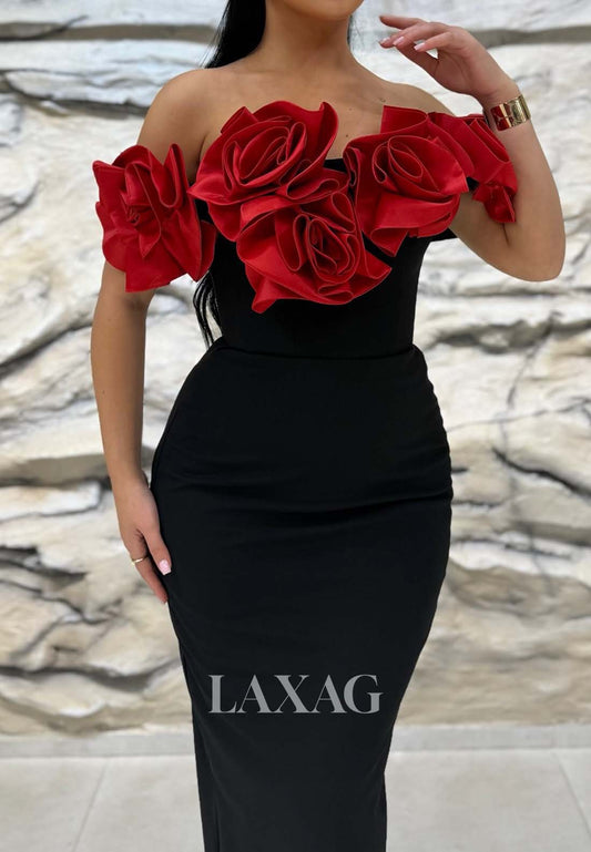 Tube Top Off-Shoulder Sleeveless Mermaid Evening Dress Floral Embellished Floor-Length Formal Gowns