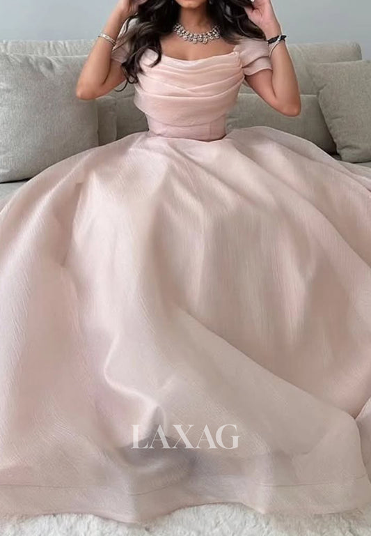 Scoop-Neck Off-Shoulder Pleated Formal Gowns Spaghetti Straps Beaded A-Line Evening Dress