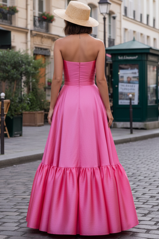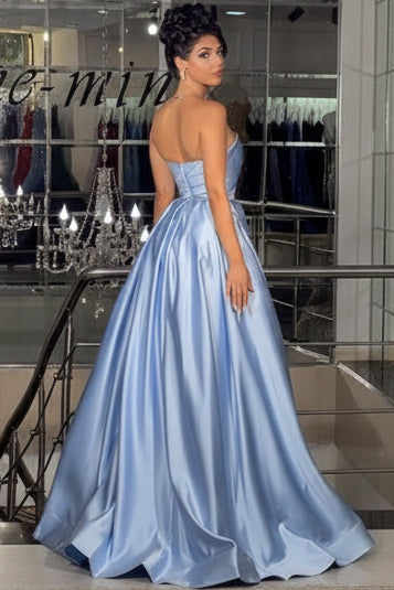 Tube Top Off-Shoulder Sleeveless Satin Pleated Floor-Length Simple A-Line Prom Dress