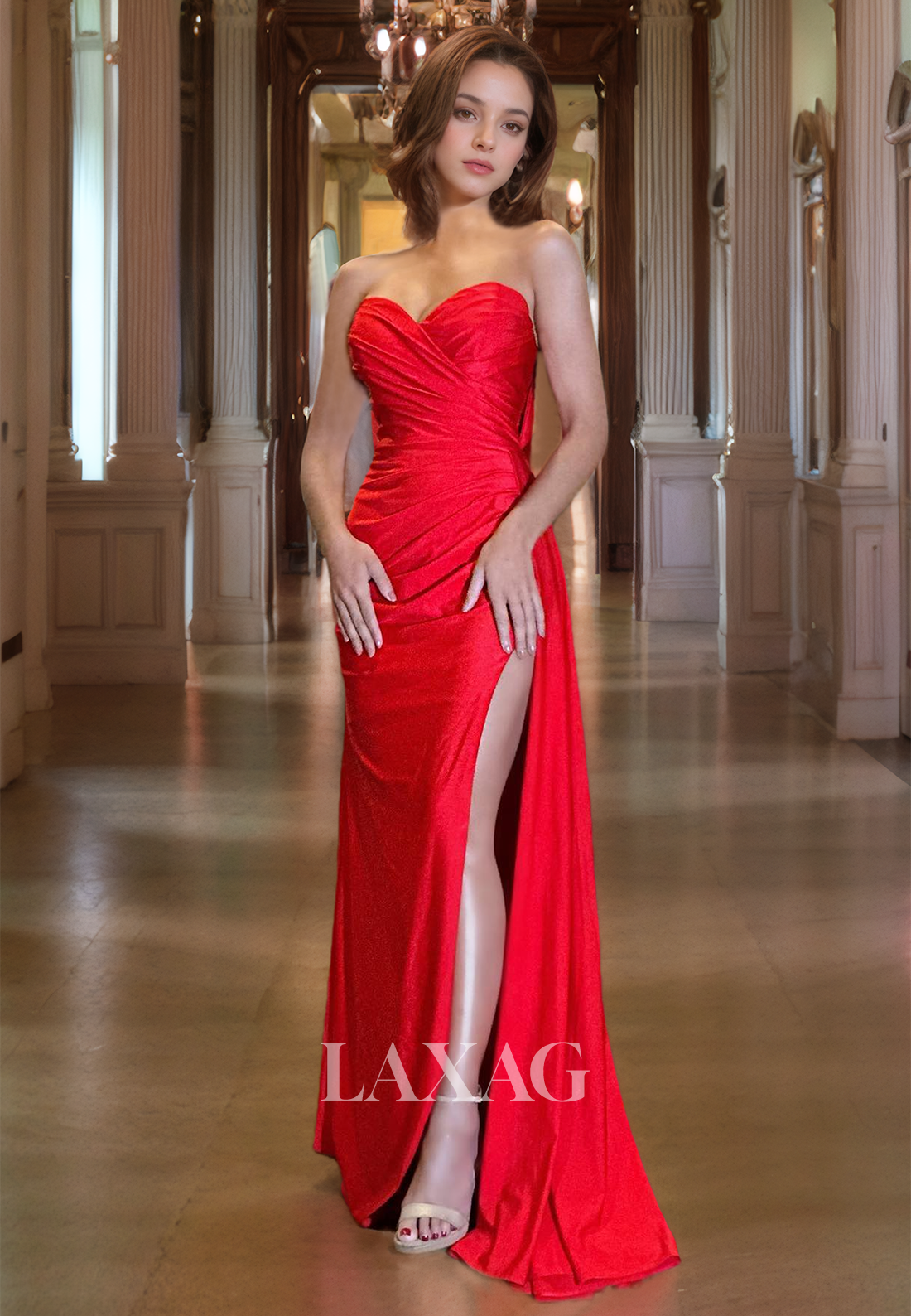 High Slit Long Formal Party Dress Sweetheart Sheath&Column Prom Dress