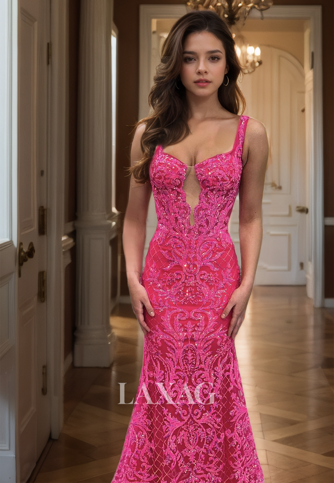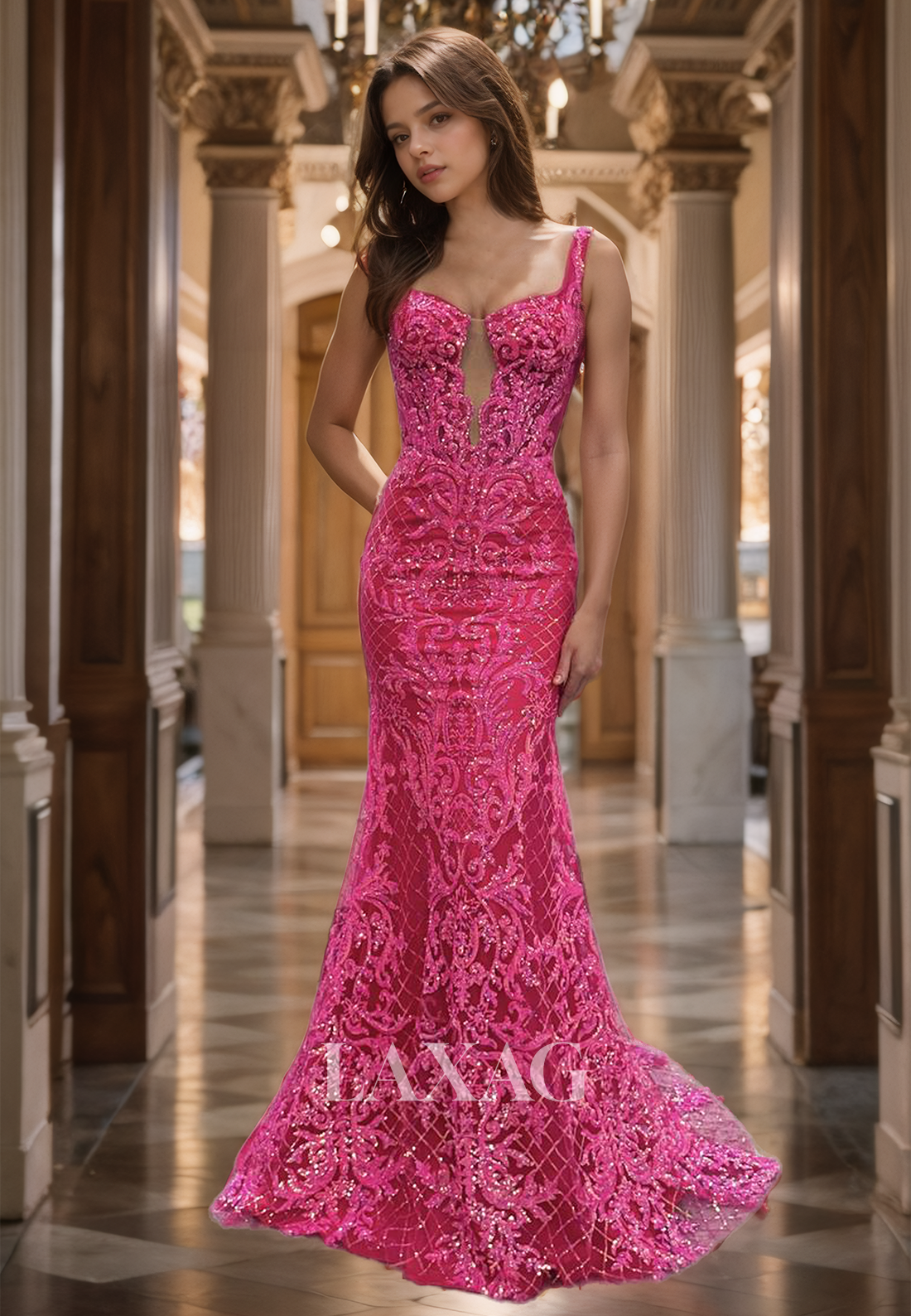 Allover Lace Beaded Sweetheart Sleeveless Evening Gowns Spaghetti Straps Pleated Mermaid Prom Dress